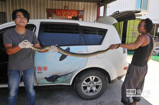 缅甸蟒似乎发现苗头不对,竟从油门踏板一溜烟的钻进面板组件内,钟立伟和随后赶到支持的同仁陈光耀一时束手无策,只好连蛇带车开到金城镇,请有饲养爬虫经验的鹏达汽车保养厂负责人李锡冠协助处理。