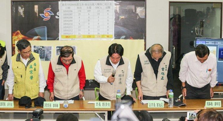 台湾南部地震搜救历时8天,台南市长赖清德13日下午宣布“救援完毕”。(图片来源:台湾《联合报》)