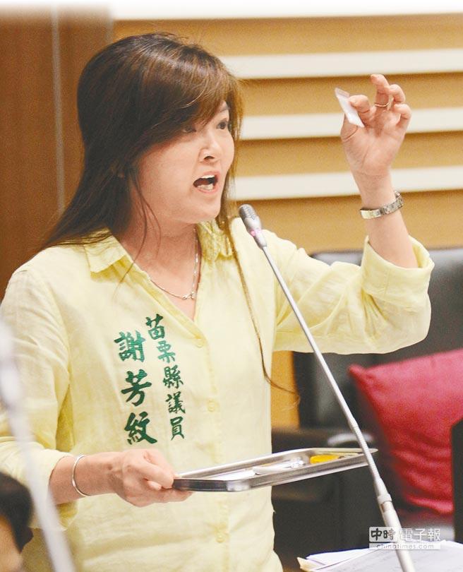 竹南选区的谢芳纹昨天是最后一名质询,她当着县长徐耀昌、王嘉衡与县府一级主管的面,拿出1小包K他命和1支烟,高分贝指责毒品入侵校园,要求教育处和警察局重视这个问题。