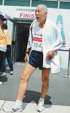 参赛选手中,年纪最轻的是12岁的小学生,最年长的则是92岁再度挑战体能极限的老人。连续4年都倒着跑的一名薛姓男子也出现在会场,他笑说,他已经预约101次,每年都要来。