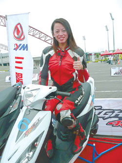她说,因为男友热爱赛车,所以一起加入赛车行列,工作之余,每个星期都会练车,且从入门的车种开始,到现在修改引擎、避震器、煞车后,车子性能愈来愈好,但赛车一定会在赛车场,不会在马路上飚车。男友教练苏文男曾拿下台湾摩托车锦标赛冠军,昨天两人一起出赛。