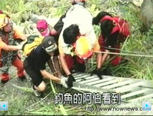 一位钓鱼的老人看到,跑到派出所报案,报案之后通知救难队,救难队才去救援。救援人员用绳索接驳方式卖力救援;男子获救后整个人瘫软,被送到担架上。