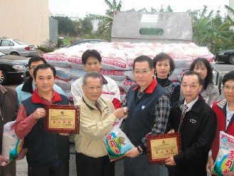 今年他们捐赠1万台斤白米,昨天运到国民党苗栗县党部,由主委李锦松代表受赠,将透过各乡镇民众服务社转送给贫户及孤独老人,县政府秘书长周世明昨天也颁发感谢状表扬。