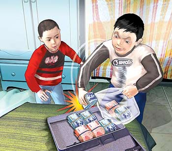 中新网2月26日电 据台湾媒体报道,台中县一名6岁江姓男童因阿公常给零用钱,平常爱请人吃东西,一对分就读初一、初二的兄弟前天向他“借”700元,男童遂带这对兄弟回自家拿钱,这对兄弟发现江父房内有92万元现金,竟全偷走,男童非但未阻止,案发到警局应讯后,还不时对媒体镜头摆姿势、展笑颜。