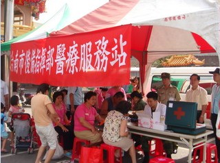 中新网8月19日电 据台湾“今日新闻”报道,台南市后备指挥部继日前于安南区设置医疗服务站后,8月19至22日连续4天,结合民间医疗资源前往高雄县甲仙乡,提供灾民最立即、最贴心的医疗支持。
