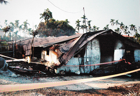 昨天凌晨12时许,妇人趁老翁熟睡将房门反锁,拿着打火机点燃报纸,企图烧毁工寮;但眼看大火几乎吞噬房间,妇人突然反悔,拿起一旁香蕉刀割开纱门,又冲回火场救人。