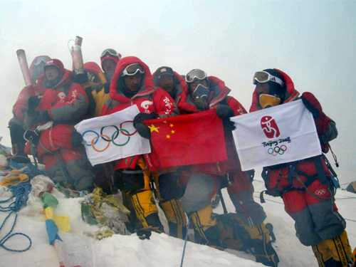 2008年5月8日9时17分,人类首次将象征“和平、有益、进步”的奥运火炬在世界最高峰上点燃。
