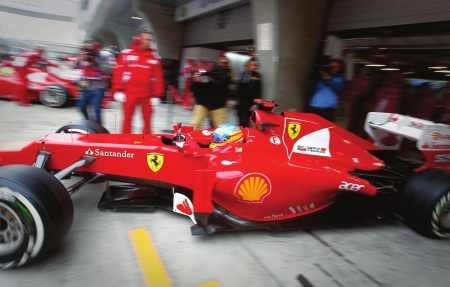 当记者进入实验室时,里面有三位工作人员正在紧张地进行数据分析。由于第一次练习赛结束不到5分钟,法拉利两辆赛车的润滑油样品才刚刚送到,装在透明的塑料瓶里,标明了阿隆索和马萨的名字。负责人特雷吉特博士将阿隆索的润滑油样品递到了记者手里,还略微有一点烫手。这间不足5平方米的小屋在每站比赛中要进行四五十次采样测试,需要花费大约7万英镑的检测费。