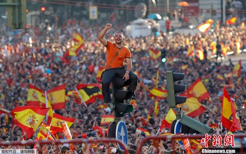 西班牙夺冠全城游行 马德里全城成红色海洋(图)(3)