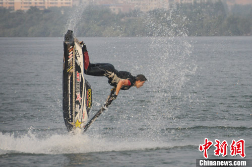 上一页 水上摩托自由花式赛 选手在水面上下翻腾(组图)(15)