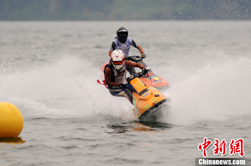 极速、激情、惊险、刺激可以说是摩托艇的代名词,图为男子立式竞速赛中