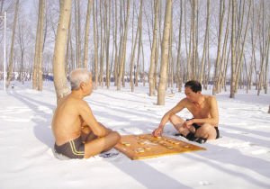 2名六旬老人雪地裸身下象棋 下完后继续冬泳(图)