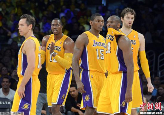 资料图:湖人“五虎”(左至右依次为:纳什、霍华德、慈世平、科比和加索尔)。