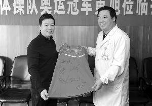 当了领队后,黄旭特别联系了南京市第一医院的骨科作为专家团队,队员们有什么伤病,他都会听从专家的建议。“骨科医生给我的队员看病,我也不能空手来啊。”刚到第一医院的会议室,黄旭就立即“献宝”,拿出了8件奥运冠军们的签名T恤。“这些都是送给医院的,我们已经有5名队员在这里接受治疗,都取得了很好的效果,谢谢这些医务人员。”