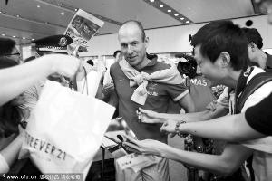 近日北京雷雨天气反复无常,航班大面积受到延误,此前国足从呼和浩特回北京,航班足足延误了近5小时,然而备受球迷热捧的荷兰队却“人品大爆发”,其8日夜里抵京的航班竟然提前了一小时抵达。鲜花、掌声、接机……荷兰队粉丝8日夜晚用热情证明他们对橙衣军团的爱,范佩西、罗本等名将深受感动。