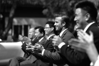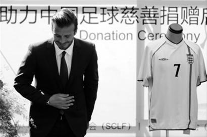 时隔三个月,“万人迷”贝克汉姆昨天再度抵达北京,旋即展开他的慈善中国之旅。在北京宋庆龄故居举行的 “贝克汉姆中国青少年足球发展暨中超联赛推广大使慈善捐赠启动仪式”上,小贝展示了自己和妻子维多利亚共同捐赠的球衣和跑车,以此支持中国青少年足球公益项目的发展。