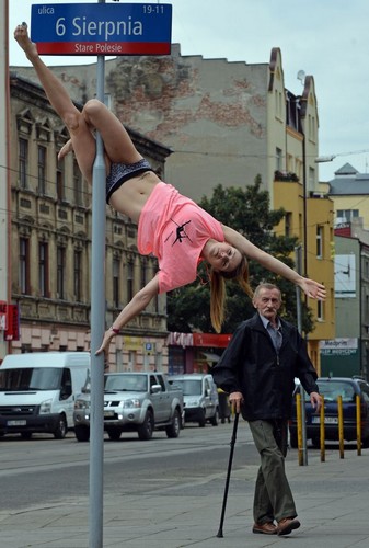 波兰花游运动员街头练习钢管舞 惹路人驻足(图)(6)
