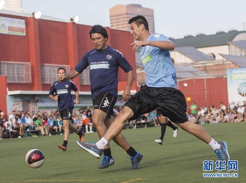 林书豪出席纳什慈善足球赛 场边热身秀颠球(图)(4)