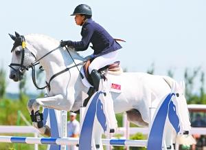 马术场地障碍个人赛共分两轮。在上午的首轮角逐中,朱美美掉了一杆,被罚4分。下午的第二轮,朱美美和坐骑配合完美,以0罚分完赛。