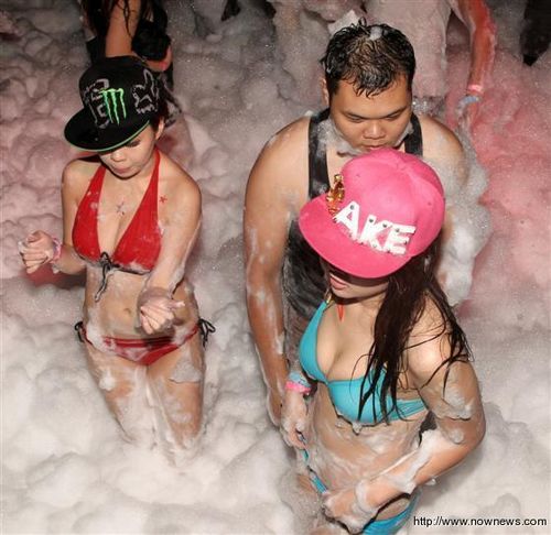 泡泡派对火辣比基尼摔角。图片来源:台湾“今日新闻网”