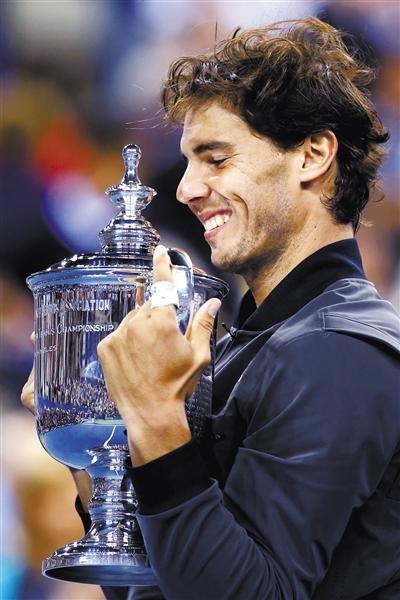 怀抱奖杯,纳达尔一向紧绷的脸上终于露出了笑容。