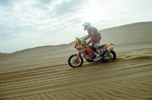 摩托车组,金城车队的苏文敏拿下本阶段第一,赛后在接受采访时苏文敏认为虽然本届比赛自己的准备工作做得极为有限,但目前对赛车和比赛节奏都已经逐步适应,他期待能在后面的赛段继续努力。他的队友阿根廷人帕布诺排在第二位,他们的另一位队友周田在下午的SS9因晚报到而被罚时7分钟与阶段第一擦肩而过,排名第三。