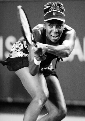 9月24日,在2013泛太平洋公开赛女单一场焦点战中,美国选手维纳斯·威廉姆斯以2比0击败白俄罗斯选手阿扎伦卡,挺进16强。图为维纳斯·威廉姆斯在比赛中回球。
