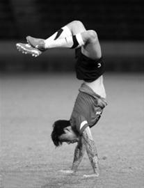 前日,广州恒大踩场训练备战今日与柏太阳神进行的亚冠半决赛首回合比赛,张琳芃一时兴起,在记者镜头前打起了倒立,表现得心态很轻松。