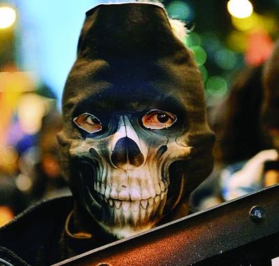 暴徒戴着骷髅面具