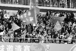 比赛现场球迷为国青队加油 中体在线 刘贵芳摄