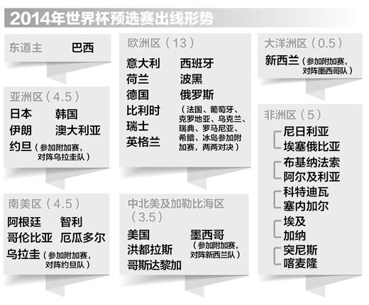 北京时间16日的国际比赛日过后,南美洲区、中北美及加勒比海区的世界杯预选赛均已宣告结束,欧洲区也结束了小组赛的争夺,算上此前已经结束的亚洲区、大洋洲区预选赛,明年世界杯决赛阶段的32张门票已派发出了2/3。加上东道主巴西队,目前已有21支球队订好了巴西世界杯的席位。