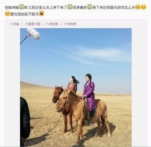 女星演骑马戏不慎摔下马背 跌落雪地受伤(图)