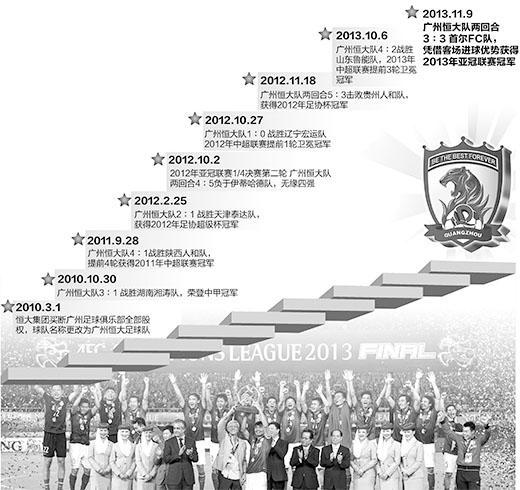 2010年3月1日,恒大集团以1亿元买断广州足球俱乐部全部股权,成立广州恒大足球俱乐部队。