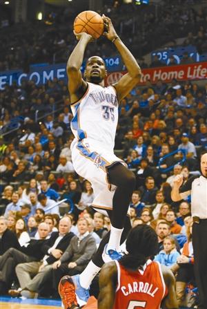 曾经的科比,个人进攻技巧达到巅峰,得分如同儿戏;本赛季杜兰特上演类似奇景,雷霆昨天主场111∶109战胜老鹰豪取八连胜,杜兰特继续高得分表现,他得到全场最高的41分,连续11场得分30+。他带领球队在末节反扑,完成14分的逆转,终场前1.5秒时更是他的准绝杀让球队获胜。