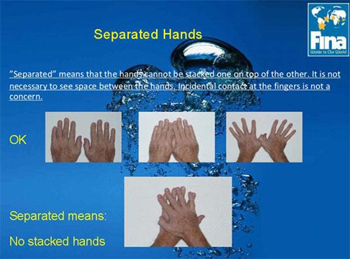 “分开”是指双手不能上下叠放,不需要观察两手间是否有空隙或手指间是否有偶然的相互接触。