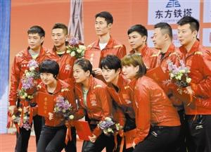 中乒告别“马王时代” 退役队员仪式上合影(图)