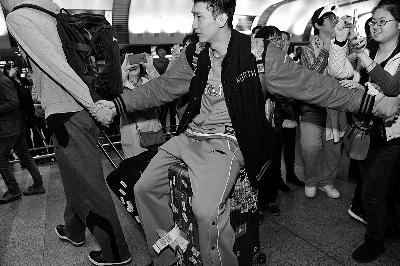 艰难拿下半决赛第五场生死战的北京金隅男篮,昨天回京时在首都机场享受到了英雄般的待遇。