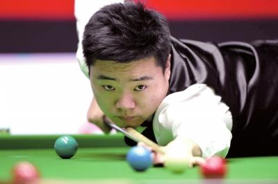 4月6日,中国选手丁俊晖在比赛中。新华社发