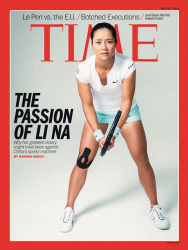 据李娜的经纪公司IMG公司确认,金花一姐将会以封面人物的身份登上5月26日这一期的美国《时代》杂志。这是一年之内她第二次荣登该杂志封面,2013年李娜曾以入围《时代》杂志评选出的该年度世界最具影响力100人名单的身份成为其中重点推荐的5位封面人物之一。这对于一名运动员来说无疑是至高的荣誉。