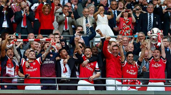 阿森纳9年首冠: 在落后两球的情况下,阿森纳连进3球最终上演大逆转,自2005年足总杯夺冠以来,枪手获得9年来首个冠军。这是阿森纳第11次获得足总杯冠军,追平曼联纪录。这也是温格第5次获得足总杯冠军,追平弗格森的纪录。