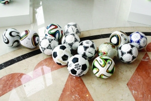 孙涌盛介绍,这些足球是他近10年来,从各处收集到的,也有部分是从网上买的。1970年的墨西哥世界杯,是第一次电视转播的世界杯;2002年的日韩世界杯,中国队是第一次参赛。这两次比赛所用足球非常珍贵。而今年的巴西世界杯用球,是网购来的,花了2000多元。