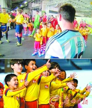 球童集体冲梅西竖拇指 最矮球童免球王难堪(图)