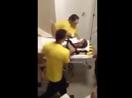 他被抬出球场后,火速送往福塔莱萨的圣卡洛斯医院接受进一步检查,之后网络上就流传一段39秒的影片,内容是内马尔躺在担架上,一群人快速推着他经过医院通道,情况显得十分紧急。