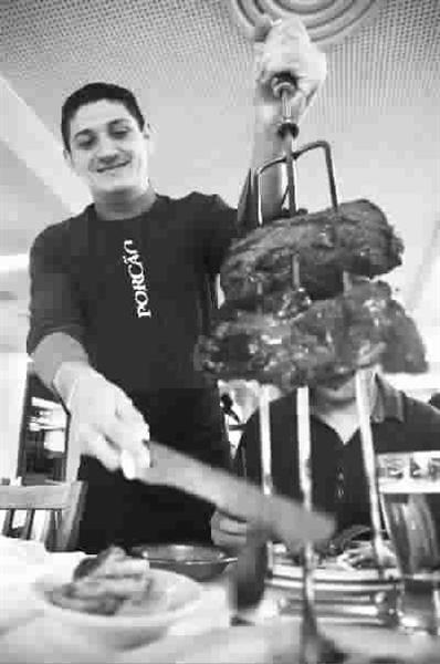 在Porcao餐厅,吃烤肉从不用蘸酱或其它佐料,埃德尔森说,正宗的巴西烤肉不用其它香料,是这项国宴保持原汁原味的秘诀所在。从20多个小时前腌制时,肉已经入了盐味,“新鲜的牛肉不能立即上炉,要用多种香料、酒、面包粒等腌制很久才行。我们这里每天从上午11时到晚上11时营业,每天都要凌晨两时起来准备。”埃德尔森说,他很珍惜这份工作,因为要养活4个孩子。