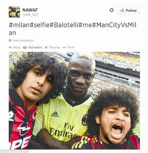 两米兰球迷闯进场与巴神自拍 巴神大方合影(图)