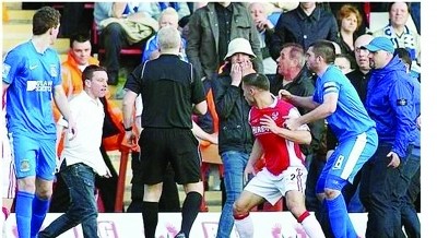 英国球迷进场与球员对峙