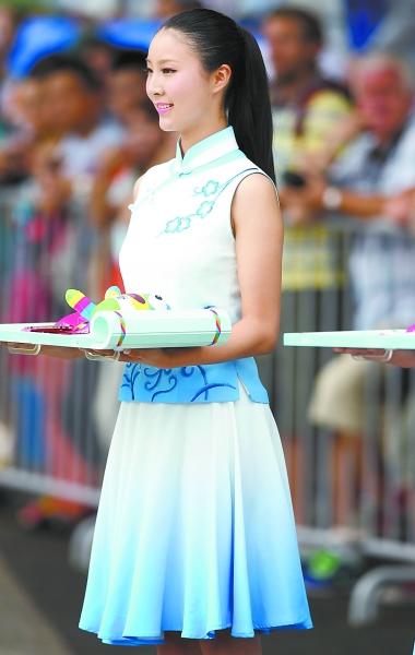 青奥会铁人三项颁奖现场,礼仪志愿者乔梦瑶成为不少青年人眼中的“女神”。乔梦瑶是南京财经大学艺术设计大二的学生,平时她很喜欢拉小提琴和绘画,充满艺术气质的她成为本届青奥会首枚金牌颁奖的礼仪志愿者。她说:“看似简单的一个动作,我就训练了半年之久。”