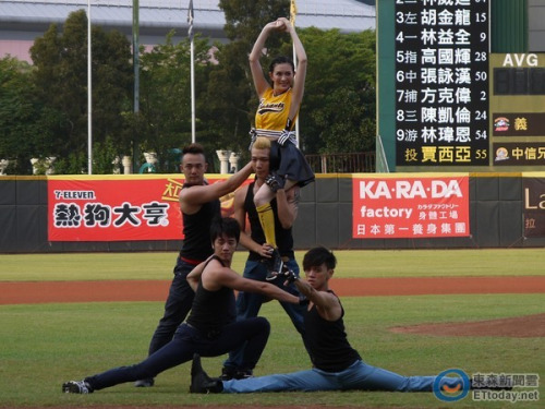 中新网8月28日电 据台湾东森电视台网站报道,日前,以国标舞见长的艺人刘真来到棒球场为棒球赛开球,独树一帜的叠罗汉开球吸引了不少目光。
