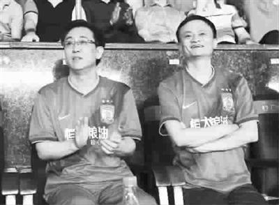 ▲ 恒大两位大老板许家印(左)和马云并肩坐在看台上观战