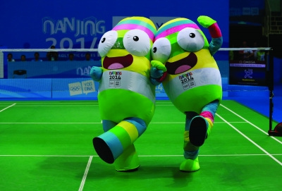 男单决赛结束后,频频“抢镜”的吉祥物砳砳再次发威!伴随着神曲《小苹果》,两位走到场中央的砳砳“翩翩起舞”!摔了、倒了、倒立了;捶了、跳了、抱抱了……有位摄影记者不由得感叹道:“一整晚,最亮的还是这俩货啊!”